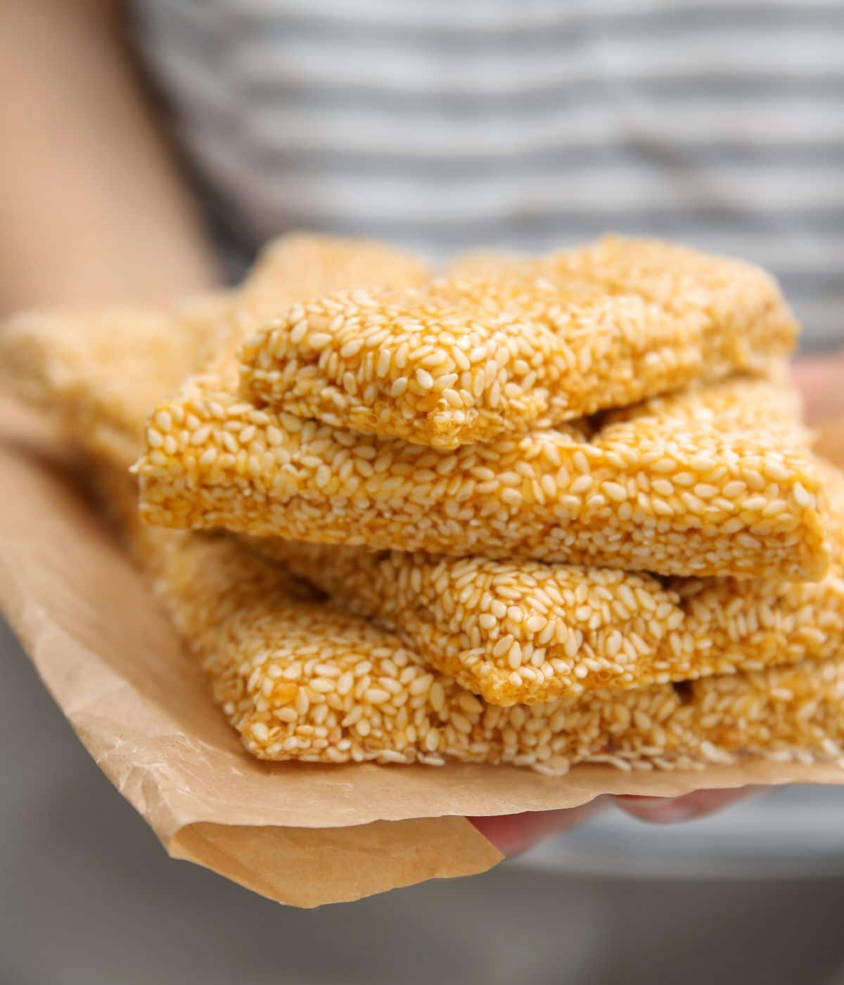 Sesame Bar, also known as Til Chikki, is a classic Indian sweet made with just sesame seeds and jaggery. This traditional vegan candy is crunchy, naturally sweet, and packed with nutrition.