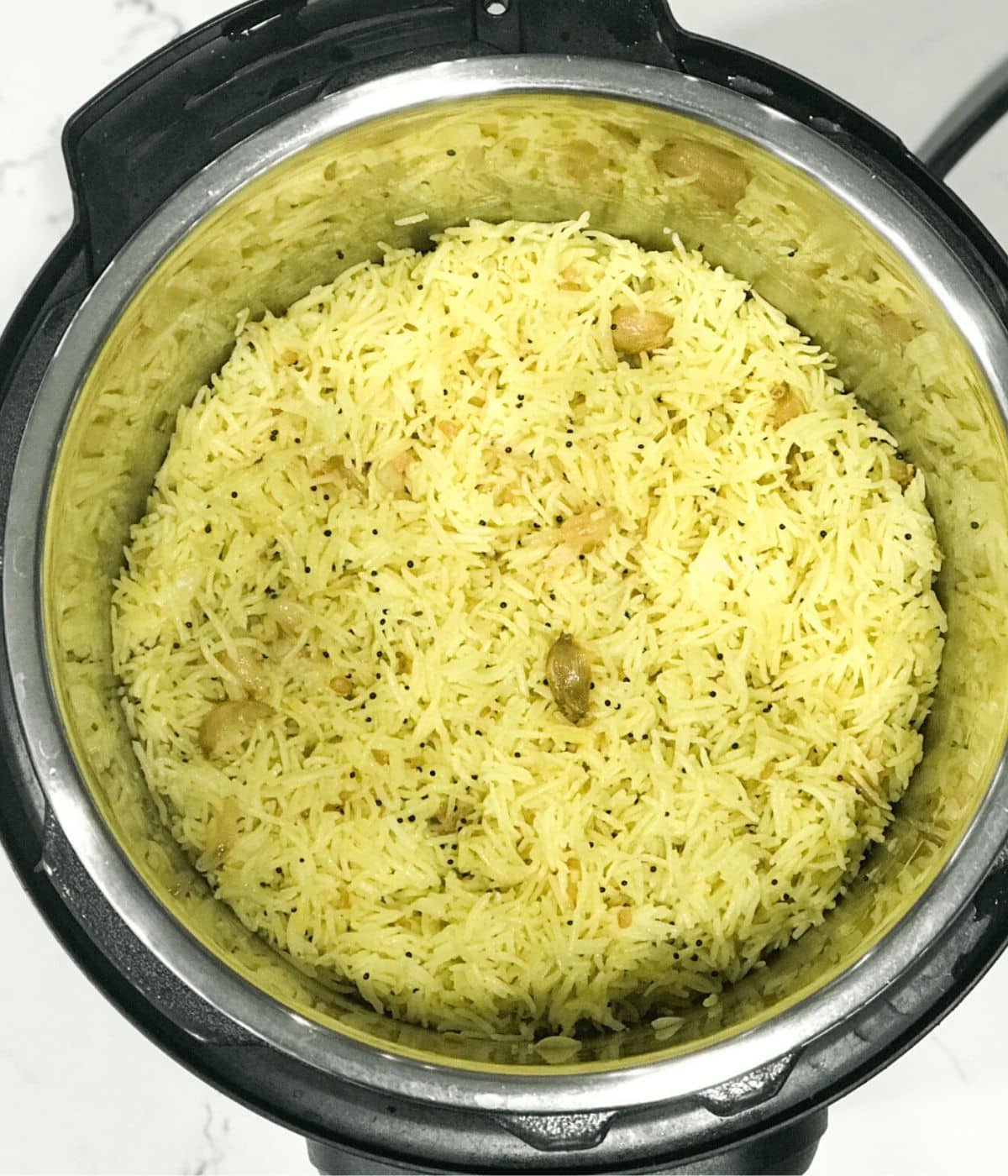 Once the timer goes off, do a natural release. Remove the lid and fluff the rice with a fork. That is it!